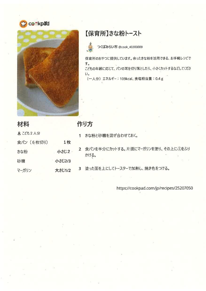 今回は、保育所でも人気の給食レシピ「きな粉トースト」です。